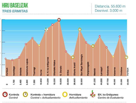 Esta XXIII Sakanako Ibialdi Handiak (Tres Ermitas 55.6 km 3000 m D+), esta incluida dentro del XI circuito de marchas de largo recorrido de Euskal Herria y del V circuito de marchas de larga duración de Navarra. La Sakanako Ibialdi Handia, también puntúa para la participación en las 4 pruebas de la Ultra Trail del Mont Blanc.
