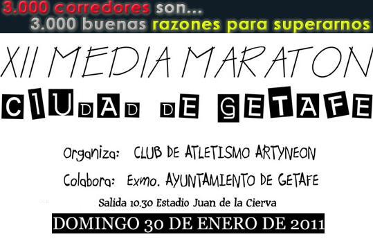 XII MEDIA MARATON DE GETAFE Inscripciones del 10/12/2010 al 26/01/2011