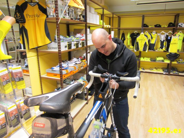Varios amigos visitaron el Taller Metta Carbon en la sede de 42195.es y aprovecharon para instalar sus acoples de cara a la temporada 2012, con barras intercambiables y apoyacodos reclinables, que se pueden utilizar en todas las distancias.
