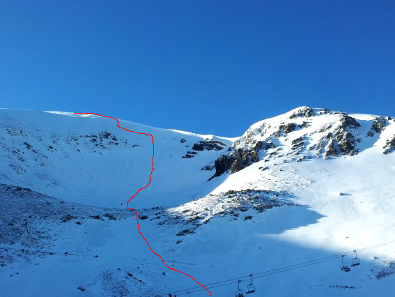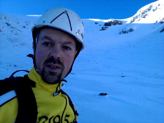 A lo lejos y a media ladera veo gente parada y noto que algo cae. En un principio creo que es una mochila, que ha patinado unos 20 metros por la pendiente, pero al ver que los de arriba bajaban, me doy cuenta que no era una mochila sino una persona.
