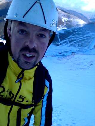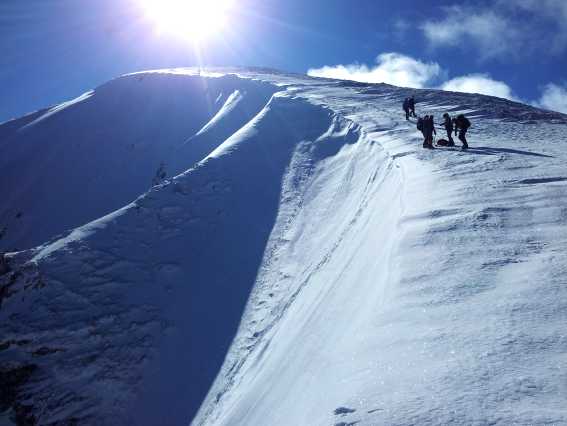 ¡¡Joder!! El viento sur de estos últimos días había acumulado cerca de 2 metros de cornisa muy difícil de pasar, así que despues de tragar saliva un par de veces, lo afronte de la mejor de las maneras.