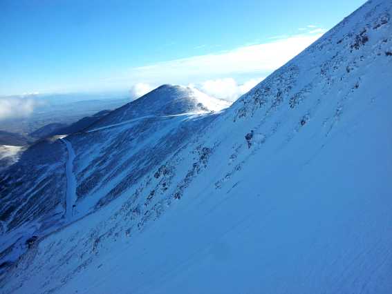 En poco tiempo dejo atrás las pistas de esquí, y me meto de lleno en la hoya desde donde salen todas las vías de ascenso al monte.