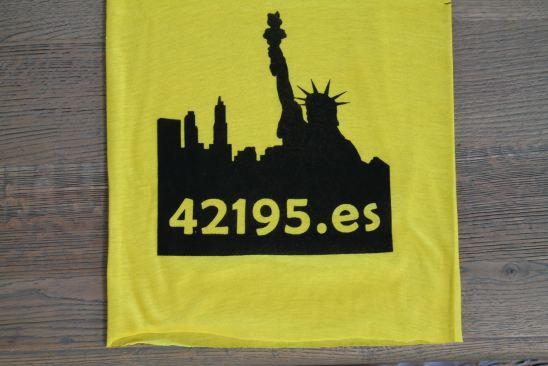 Braga tubular en color amarillo e impresión del logo "42195.es" en negro.