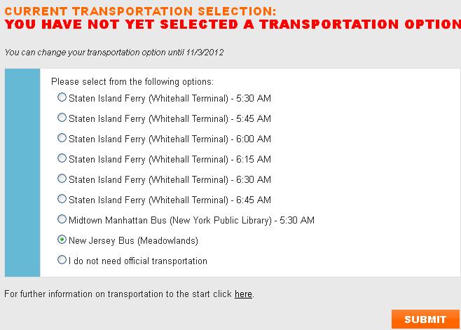 Durante estos días recibiréis un correo electrónico de la organización del maratón de nueva york (postoffice@nyrrmail.org) solicitando que indiquéis vuestra opción de transporte para el día de la carrera hasta el punto de salida del maratón.