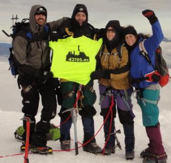"Un abrazo a todos desde la Cima del Cotopaxi (5.897 metros), en Ecuador. En los próximos días os contaremos en la web los detalles de esta increible ascension por el glaciar hasta la cumbre!"