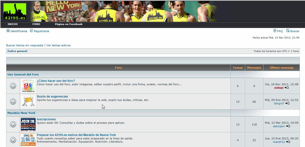 Más de 10.000 mensajes en cerca de 1000 temas diferentes, con un total de 576 usuarios y una cantidad incontable de visitas. El foro de 42195.es destaca por sus temas y actividad (para acceso clicar AQUI o sobre cualquiera de las imágenes).