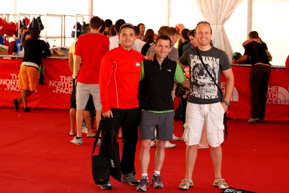 Lo conocí junto a mi amigo José Félix,el vizcaíno, que también corrió la misma prueba que yo. Hizo muy buen tiempo.Por lo visto tenían algún amigo corredor en común en Euskadi. Un tío estupendo y un tremendo deportista (en el centro de la foto)