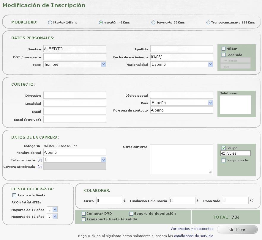 Hacer click en el botón "Modificar" aceptando las condiciones de servicio, aparecerá la pantalla: