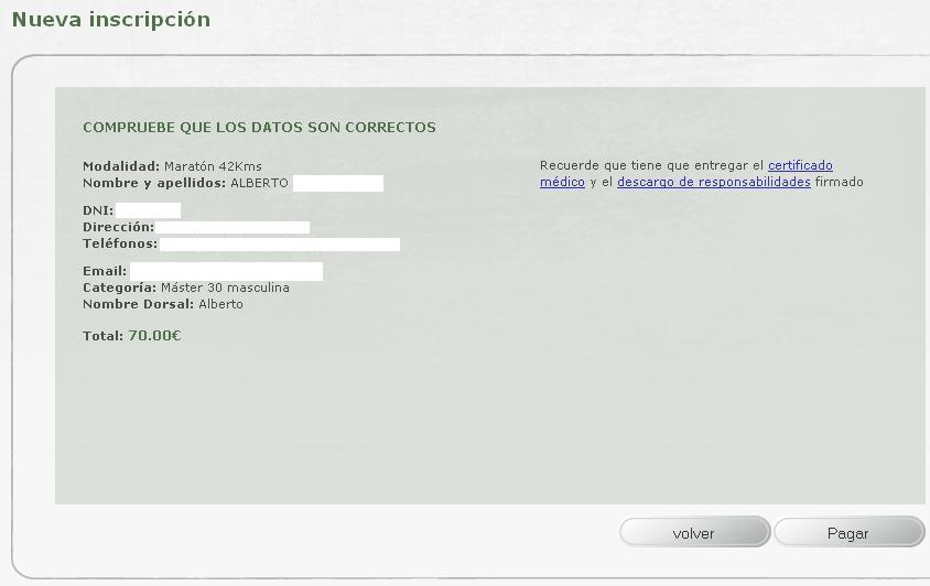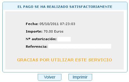 Clicando el botón "Pagar" nos debería aparecer la siguiente pantalla: