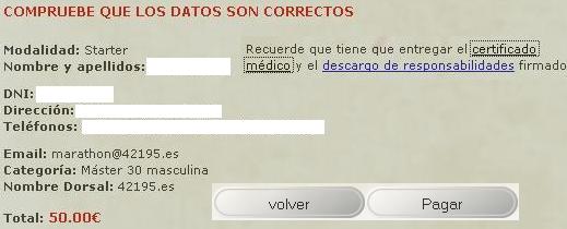 Comprobamos los datos y volvemos a seleccionar la opción "Pagar"