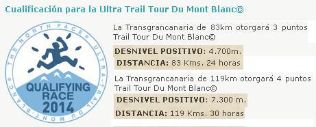 MUY IMPORTANTE DESTACAR que las pruebas "Advanced" y "Transgrancanaria" son puntuables, y con muchos puntos, para la Ultra Trail du Mont Blanc 2014 (RECORDAR que este año 2013 estará representado por 11 componentes. Podeis disfrutar y recordar esta gran noticia clicando AQUI)