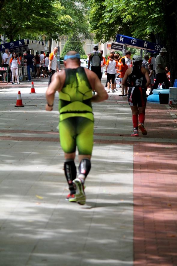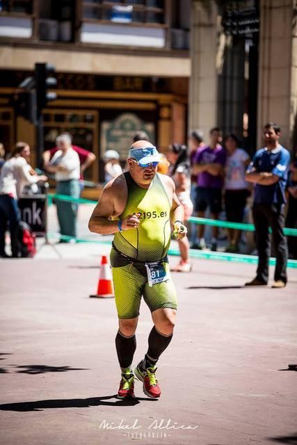 La transición en la calle Olagibel espectacular…..a quién y a mi….me recogen la bici los voluntarios para que me despreocupe de ella….como a todos, pero es que era la primera vez y yo flipaba. Me cambio, me como un plátano y a correr sin saber cómo van a responder las piernas, pero ya no tengo miedo, sé que voy a llegar.