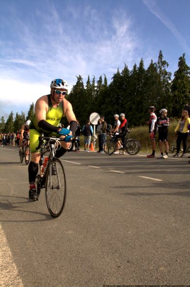 Transición cómoda, tranquila, no tengo ninguna prisa….O si…tengo que pasar el corte, no me puedo despistar….un par de dátiles y a la bicicleta. El tiempo increíble…..Dios mío no hay aire con todo lo que he sufrido en estas carreteras, lluvia, viento…Disfruto de los ironman, del recorrido, de la bici, de los avituallamientos (Vaya sobredosis de azúcar…no sé cómo no explote), voy relajado pero con la tensión de llegar lo más entero posible, lo más antes posible para no quedarme fuera.