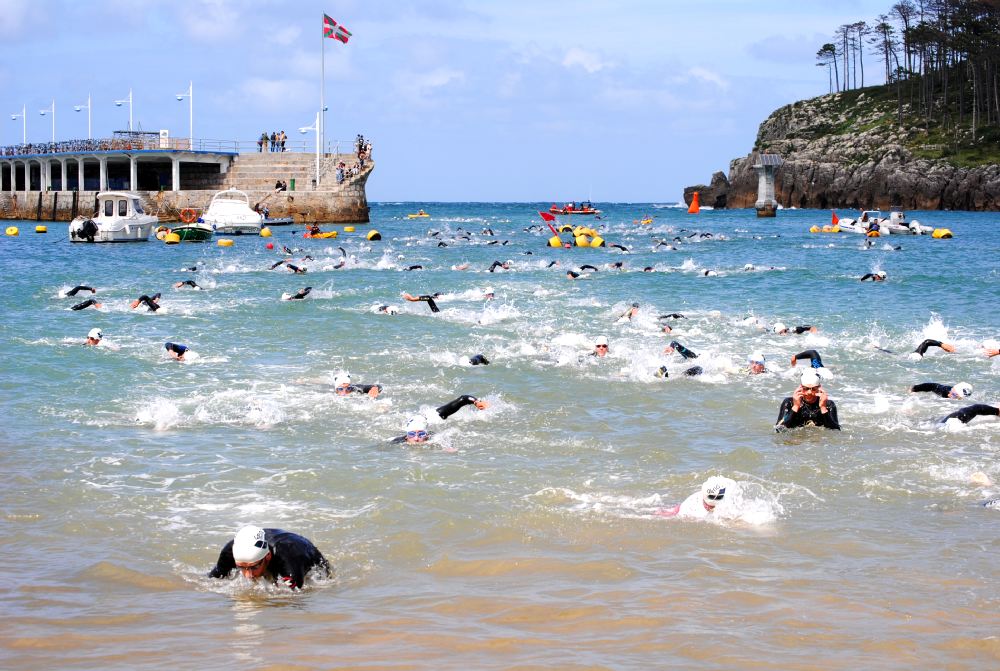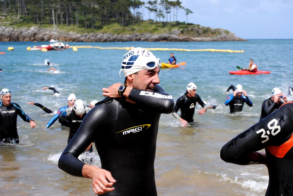 Me dan todos los últimos consejos de última hora. Entramos al agua a calentar un poco y todo perfecto. Decidimos salir retrasados, para que pase la marabunta de los 400 participantes.