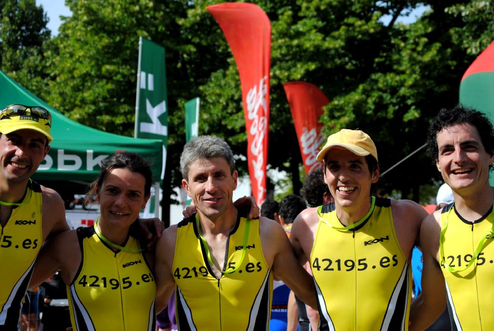 Silvia y Alberto debutan en triatlon arropados por Jon, Alvaro, Iñigo, Diego, Juan y Jon Arrarte.