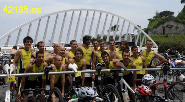En efecto amigos! Así somos en 42195.es: un equipo repleto de grandes amigosa los que nos une la pasion por el triatlon y el compañerismo, que celebramos por todo lo alto el que varios compañeros consiguieran cruzar la meta de un triatlón olímpico por primera vez! Enhorabuena Finishers!