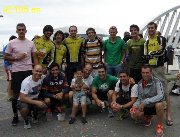 La gran sorpresa nos la llevamos al finalizar la prueba. En la entrega de trofeos los amigos del club KOAXI TT, organizadores de la prueba, tuvieron un emotivo detalle con 42195.es premiando su nutrida participación en la prueba. Para ello, nos hicieron entrega del trofeo al Ekipo Jatorrena - equipo más simpático! No se nos ocurre mejor regalo de cumpleaños que este premio a la participación!