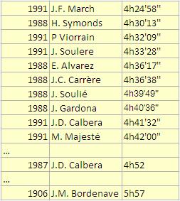 En esta última edición el primer corredor, Benat Marmisolle, completo los 45 kilómetros, en 4:39:38 lo que le situa en el séptimo mejor tiempo de todas las ediciones. Sólo 3 hombres bajaron de las 5 horas (al igual que el año pasado).