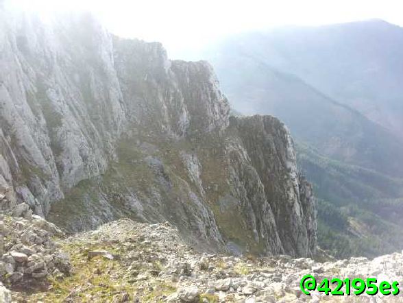 El descenso no fue tan malo a pesar de hacerlo por un sendero muy vertiginoso que cruzaba una gran pedrera, pero sin ninguna dificultad nada más que la impresión de verte casi suspendido a muchos metros de altura.