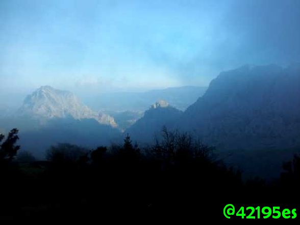 Si la subida fue delicadísima, no quería ni pensar como seria la bajada. Varios tropezones y patinazos, la voladura de la única visera de 42195.es que me quedaba y con la que había pasado muchos y muy buenos días de entrenamientos y carreras, y la preocupación lógica de llegar abajo lo antes y lo mejor posible.