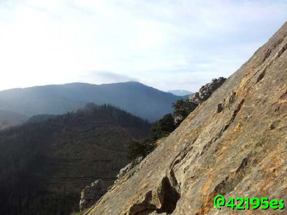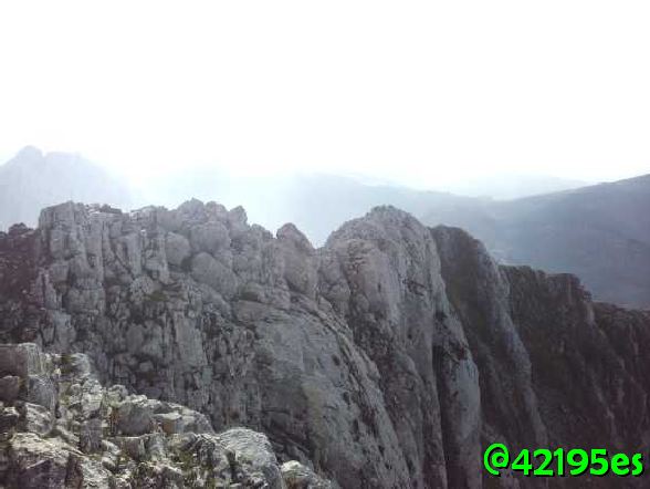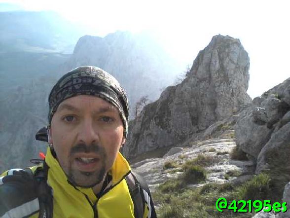 Con mucho cuidado conseguí llegar a la cima, no sin pasar algún apuro que otro en las trepadas y zonas complicadas que con la roca mojada y viento, multiplica por mucho el riesgo de caída.