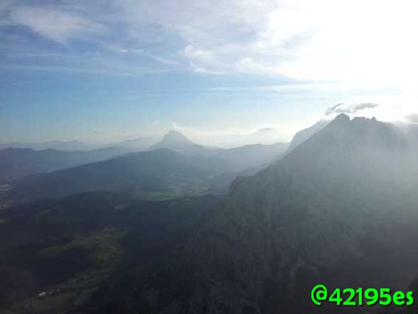 Según iba subiendo, miraba atrás y veía el infierno que seguía en la cumbre del Amboto en forma de viento y niebla. En esta segunda subida, tenía mejor suerte, porque a pesar del viento, estaba completamente despejado y podía disfrutar.