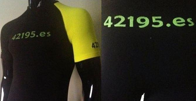 Letras 42195.es en parte delantera y mangas. Logo 42195.es en parte trasera.