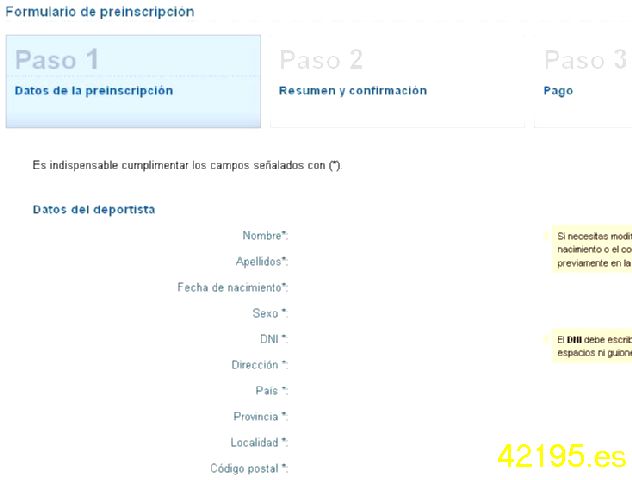 La preinscripción a continuación realizada es para el sorteo de la asignación de aprox. 225 plazas de las 450 totales. Al ser Copa del Mundo la otra mitad de dorsales serán asignados por la organización en función de diferentes criterios.