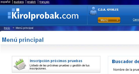 2.- Seleccionar la opción "Inscripción próximas pruebas"