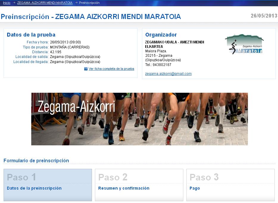 Y ya hemos hecho nuestra inscripción a través de la página web: