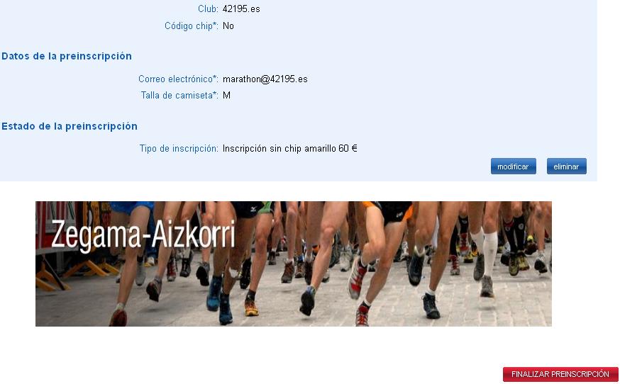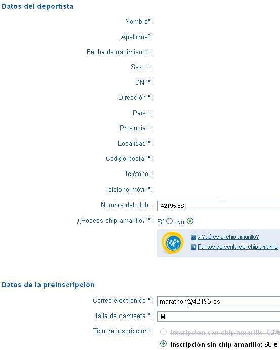 5.- Confirmar que son correctos y rellenar los que faltan (si eres soci@, simpatizante o federad@ 42195.es indicarlo en el "Nombre Club"