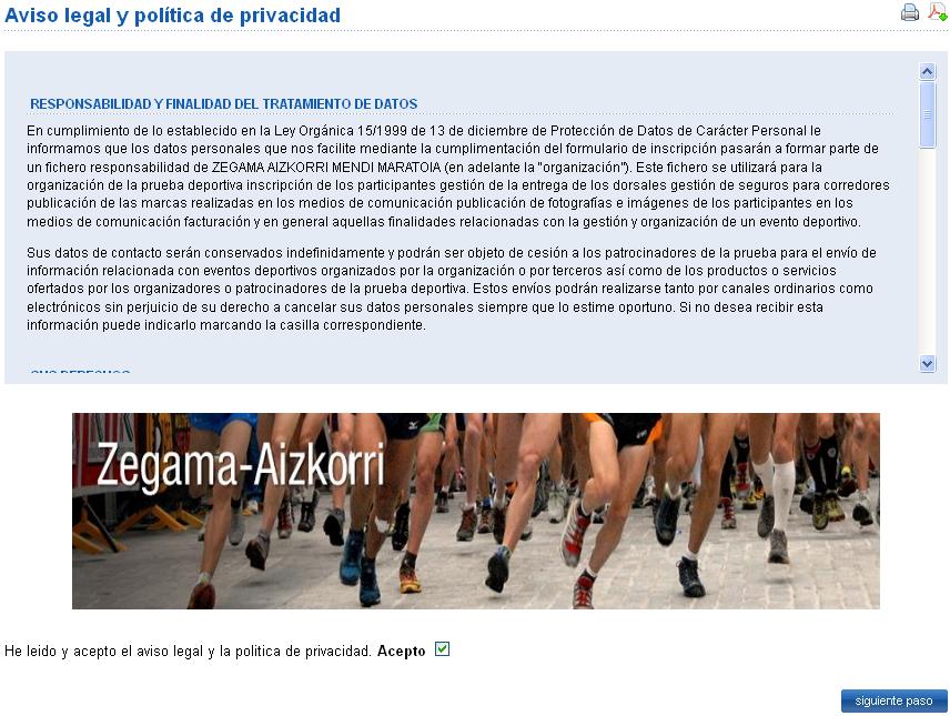 6.- Seleccionar la opción "Acepto" y clicar sobre el icono "Siguiente paso"