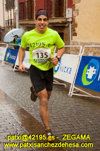 El día que nos hizo no nos puso las cosas fáciles. Siendo la lluvia y el frío unos acompañantes durante toda la carrera, ese no fue el principal problema. El verdadero hándicap a superar durante todo el recorrido fue el inmenso barro que había. Es por ello que llegando a Sancti-Espíritu empecé a notar las piernas cargadas y subiendo el "Tourmalet de Zegama" unas terribles sobrecargas en los vastos internos que hicieron que se me rondara la idea de retirarme. Poco me faltó, ya que tenía el coloso Aizkorri en frente y 22 kilómetros por delante. Finalmente pensé en amigos, familia, en mí mismo... No podía fallar y tenía que superar ese momento como fuese. No me podía retirar a las primeras de cambio. Supe sufrir y pensar en que "el sufrimiento es pasajero, pero la gloria que me esperaba en Zegama era permanente"